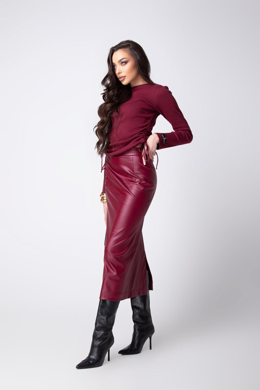 Блуза от фино плетиво с връзки "SS Brand" Burgundy